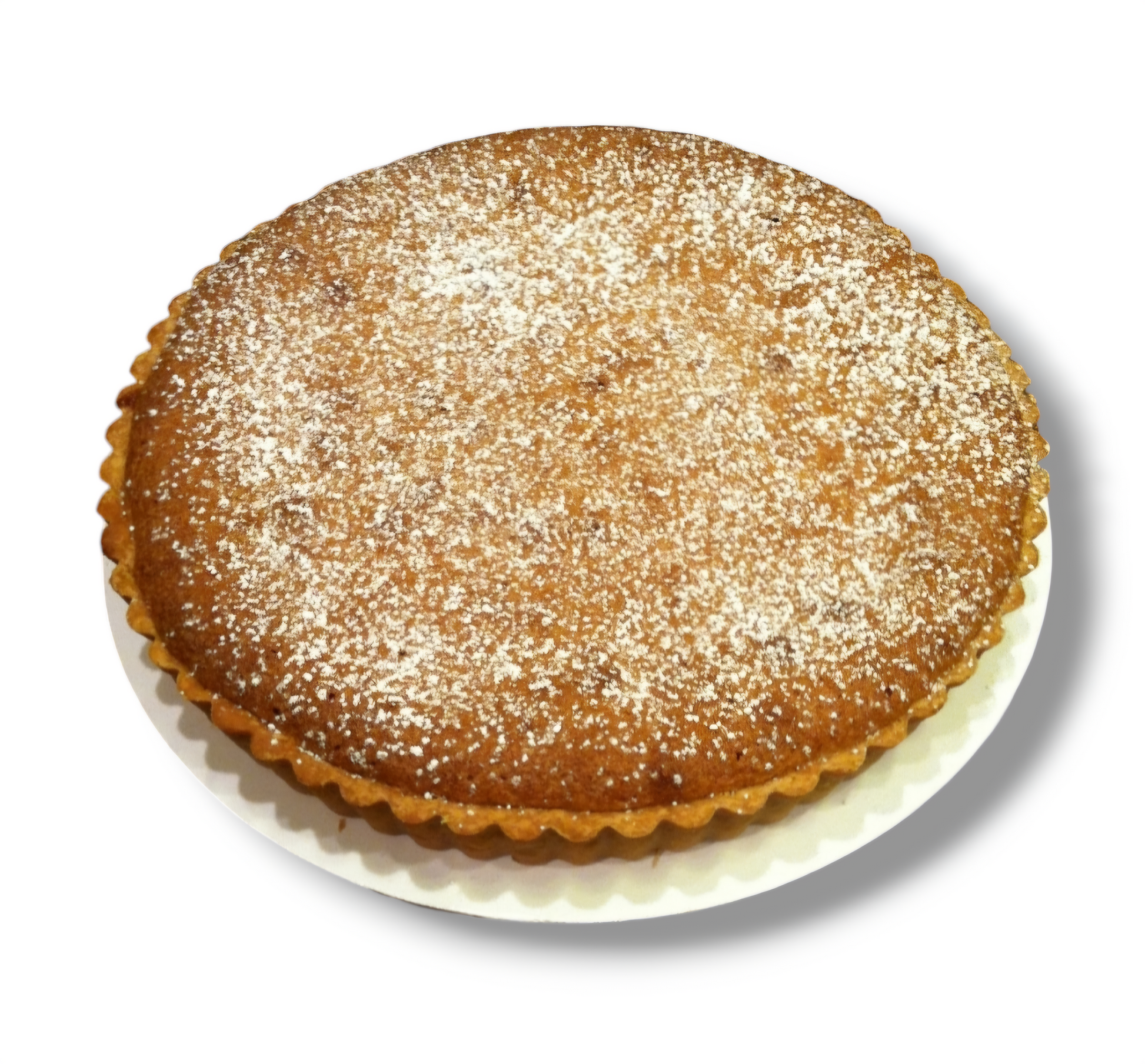 Americans call it a pie, the French call it a tart. This 9 inch buttery crust, caramel and walnut base topped with almond cream will not disappoint your taste buds.